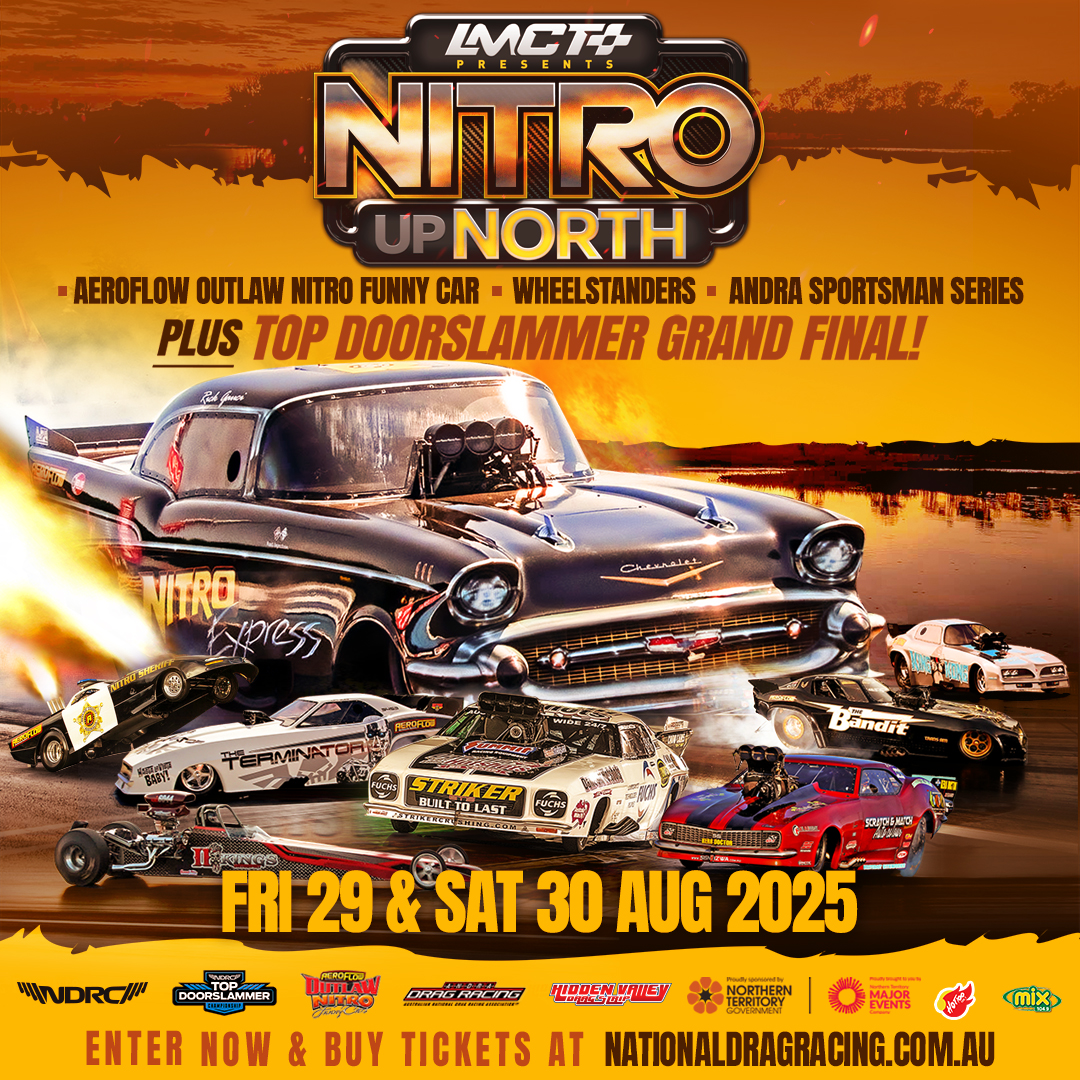 Darwin's Hidden Valley Drag Strip will host the awesome Aeroflow Outlaw Nitro Funny Cars and the Final Round of the 2025 Australian Top Doorslammer Championship